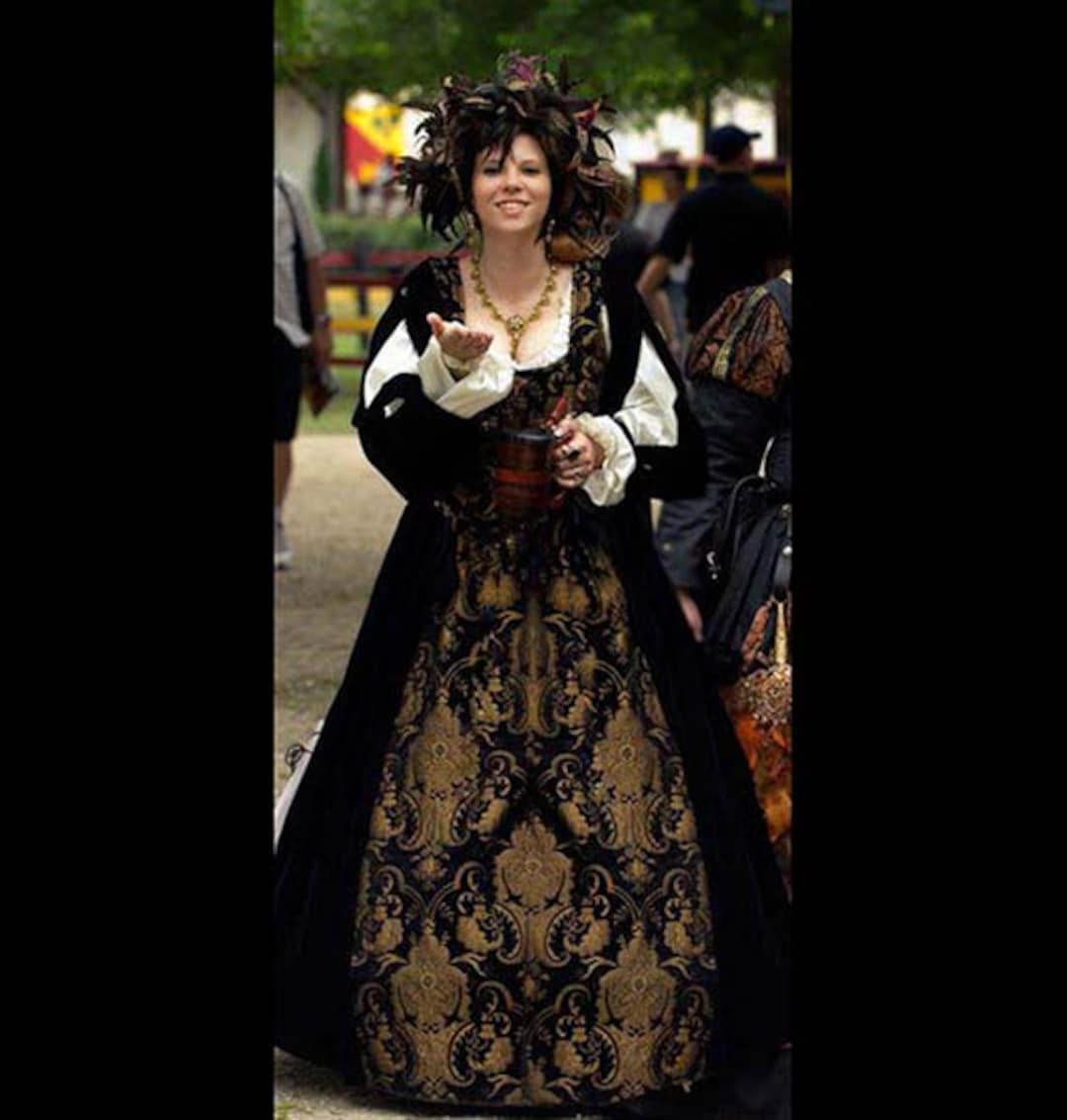 Renaissance Medieval Black Brocade julian Dress Etsy