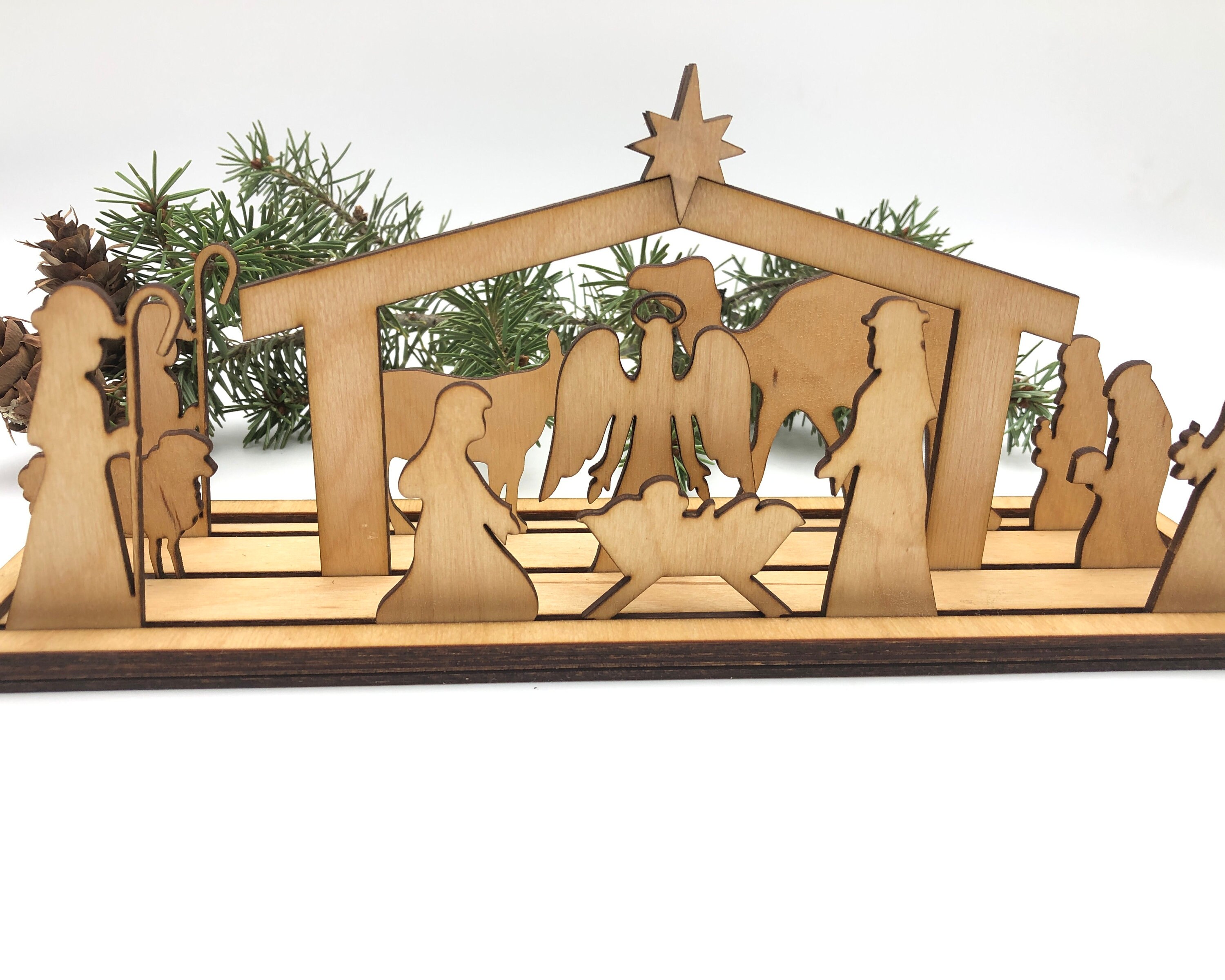 Geschlitzte Silhouette Krippe aus Holz. 13 Krippenstücke plus