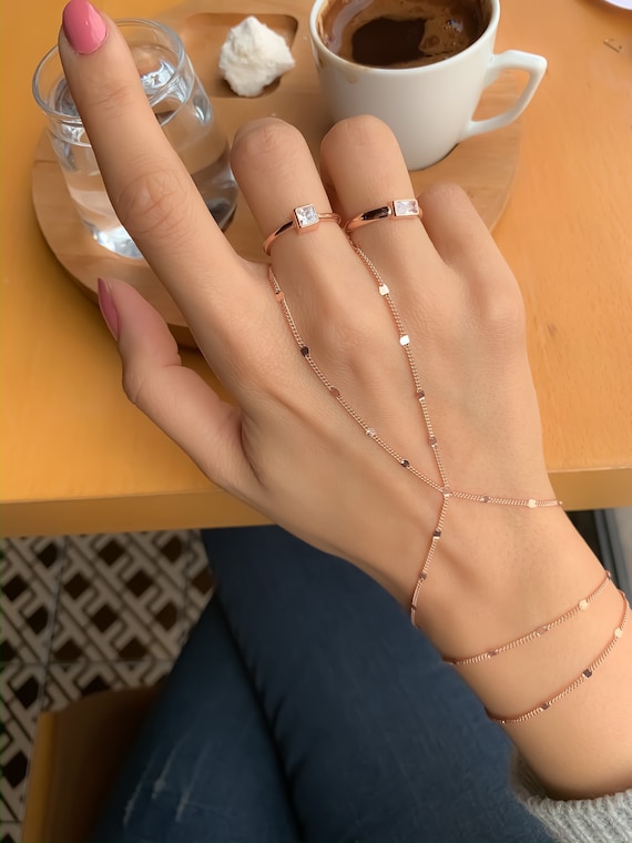 Hand Chain Slave Adjustable Bracelet Jewelery 925 Silver 14K Etsy