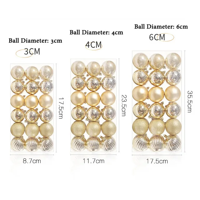 2024 3/4/6cm 36pcs Color Glitter Christmas Balls Shiny Christmas
