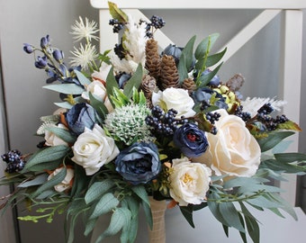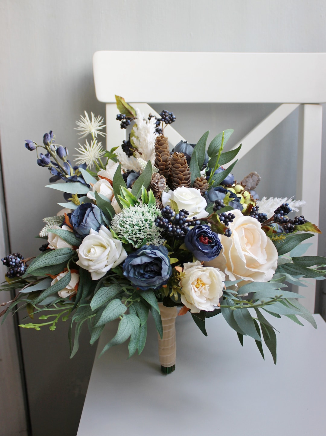 Winter Wedding Bouquet Navy Ivory and Blue Wedding Bouquet