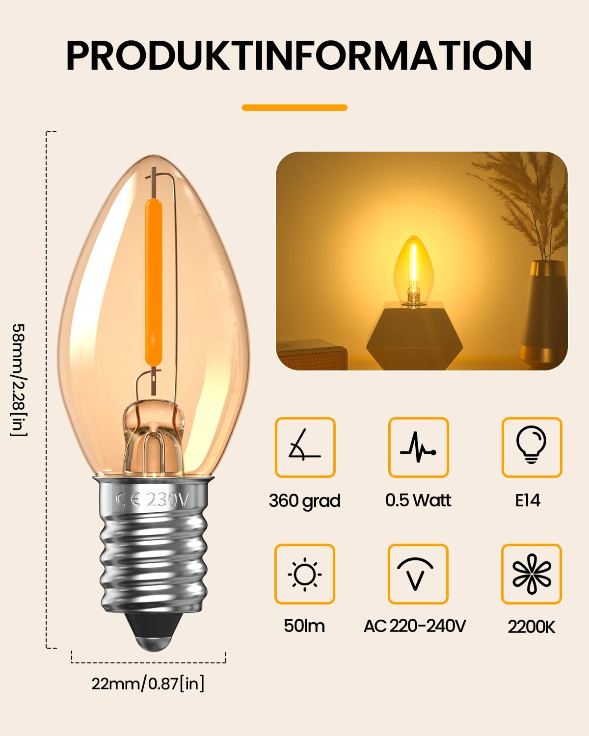 DoRight 0.5 W Mini E14 Candle Bulb, Warm White, C7 LED Night Light