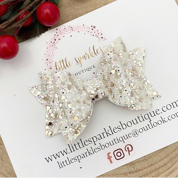 Cream Glitter Bow Gold Hair Bow Cream Hair Bow Girls Etsy