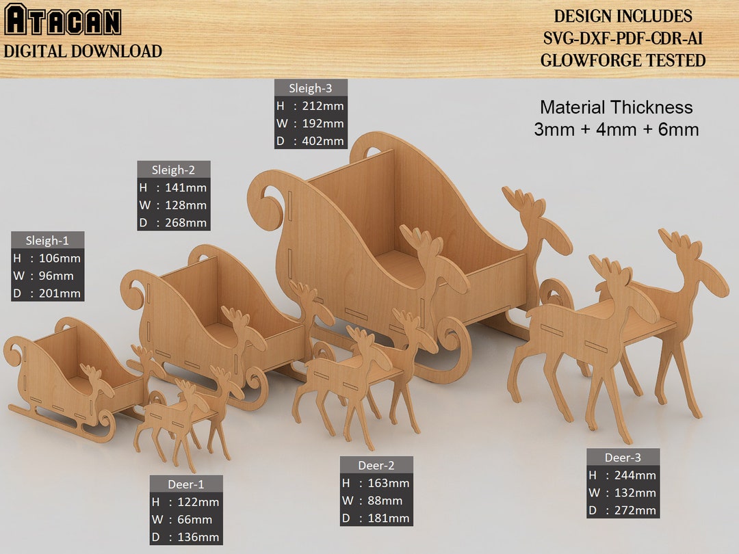 Wooden Sleigh With Deer / Laser Cut Christmas Decor / Santa Etsy