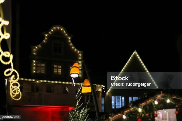 Glowing Decoration And Lights Lamps On Christmas Advent Market